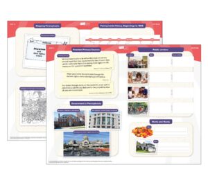 Build geographic literacy, background knowledge, and comprehension while exploring Pennsylvania’s geography, history, and government as well as citizenship and community participation. Encompass is designed to make a big impact using easy-to-teach and fun-to-learn activities that take 15–30 minutes and fit nicely with social studies or ELA.